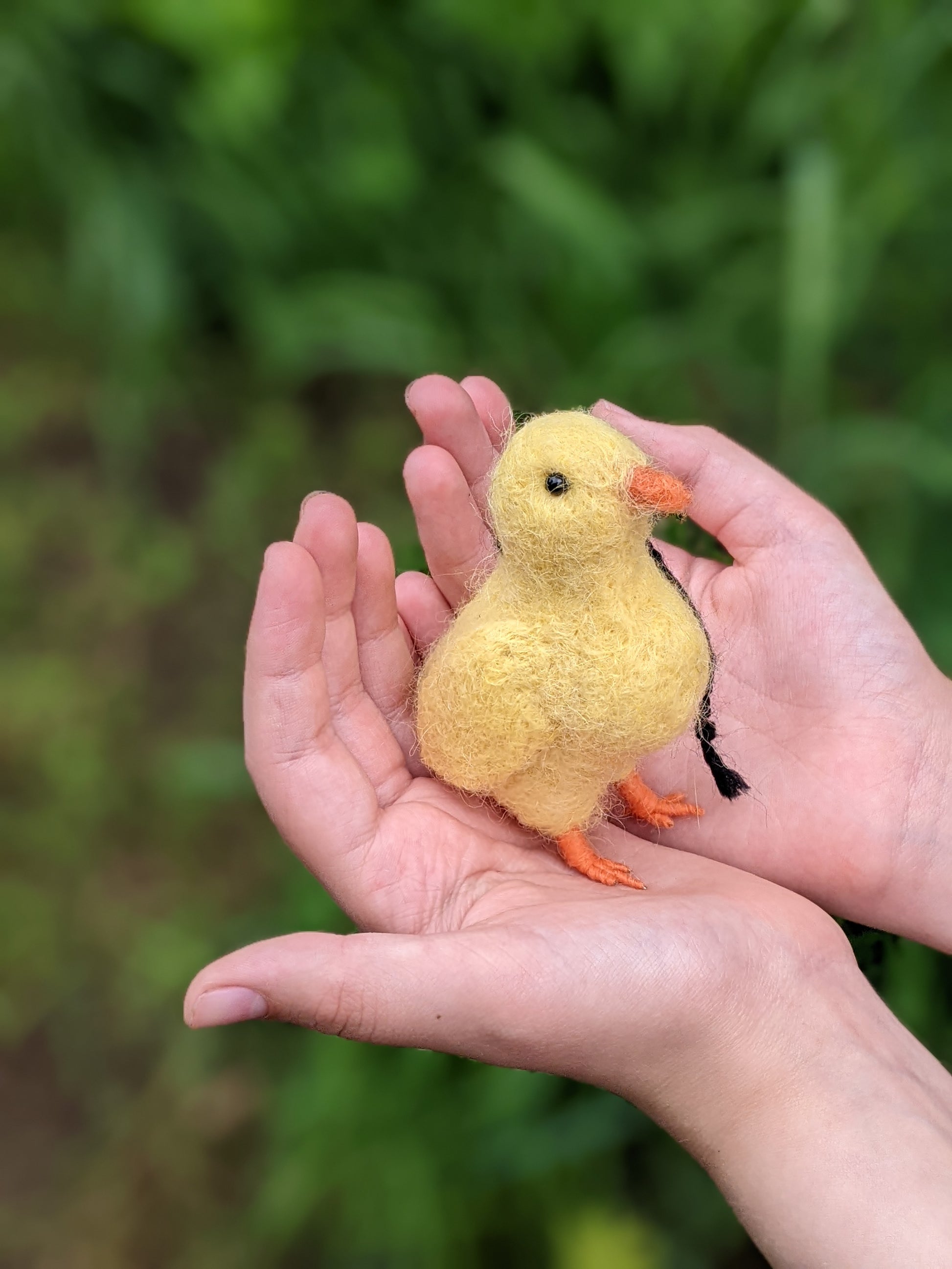 Yellow Chick: Felted Alpaca Fiber Miniature Sculpture Ornament