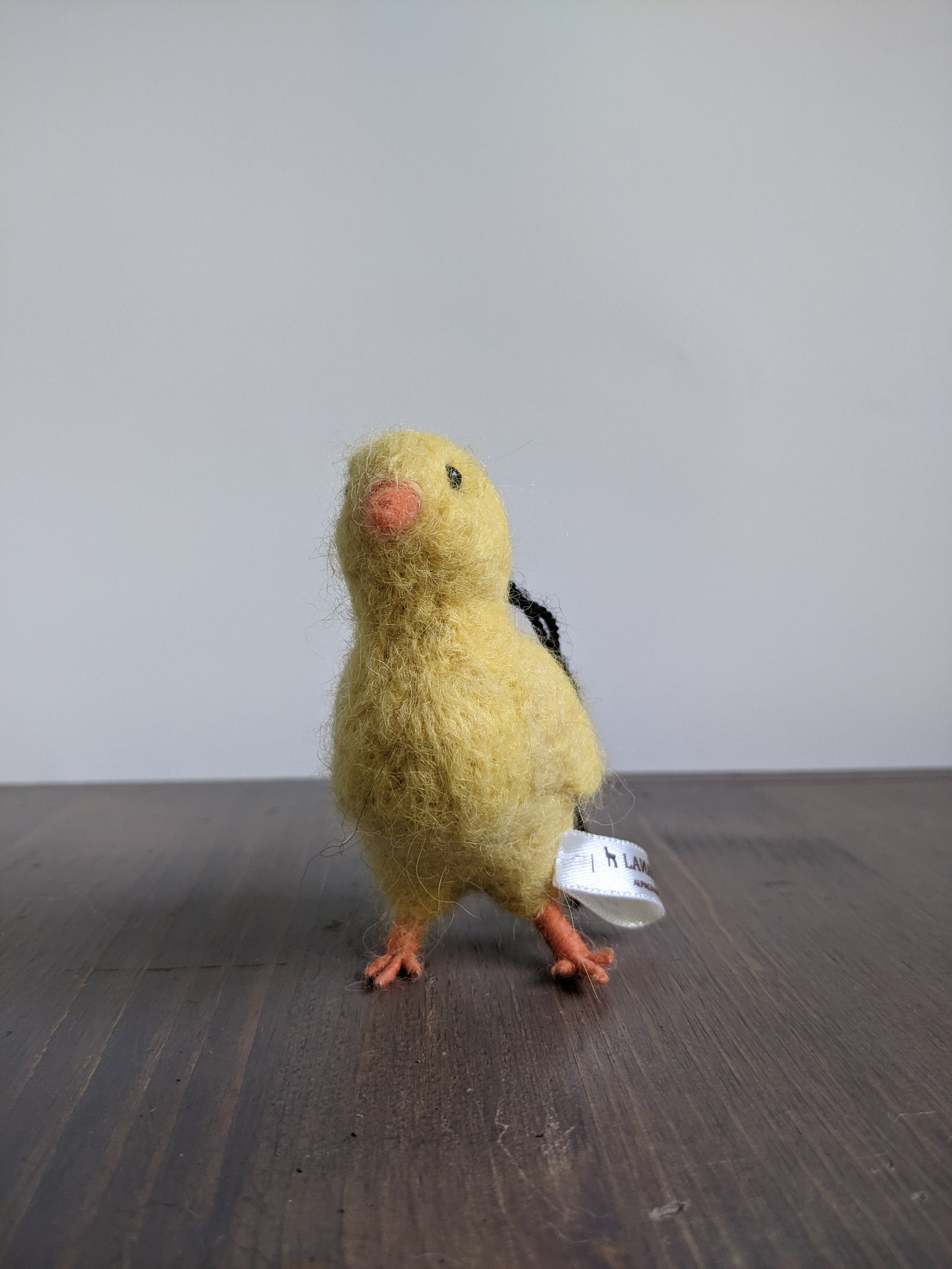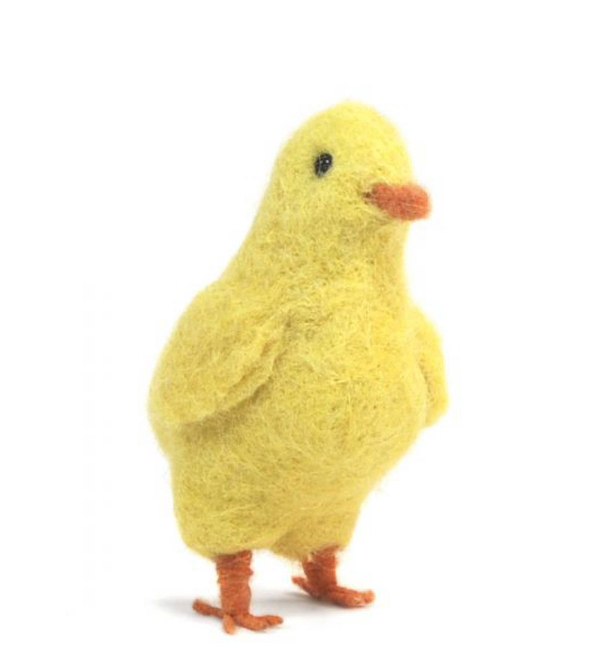 These adorable yellow chicks are needle felted by hand by artisans in Peru using soft alpaca fiber. They look darling sitting on a shelf in baby's nursery, and make a lovely complement to our farm themed nursery prints. She is finished with a loop so can also be used as an ornament. Each chickie is detailed and created with love. Just like our real feathered friends, each piece is perfectly unique with slight variations.