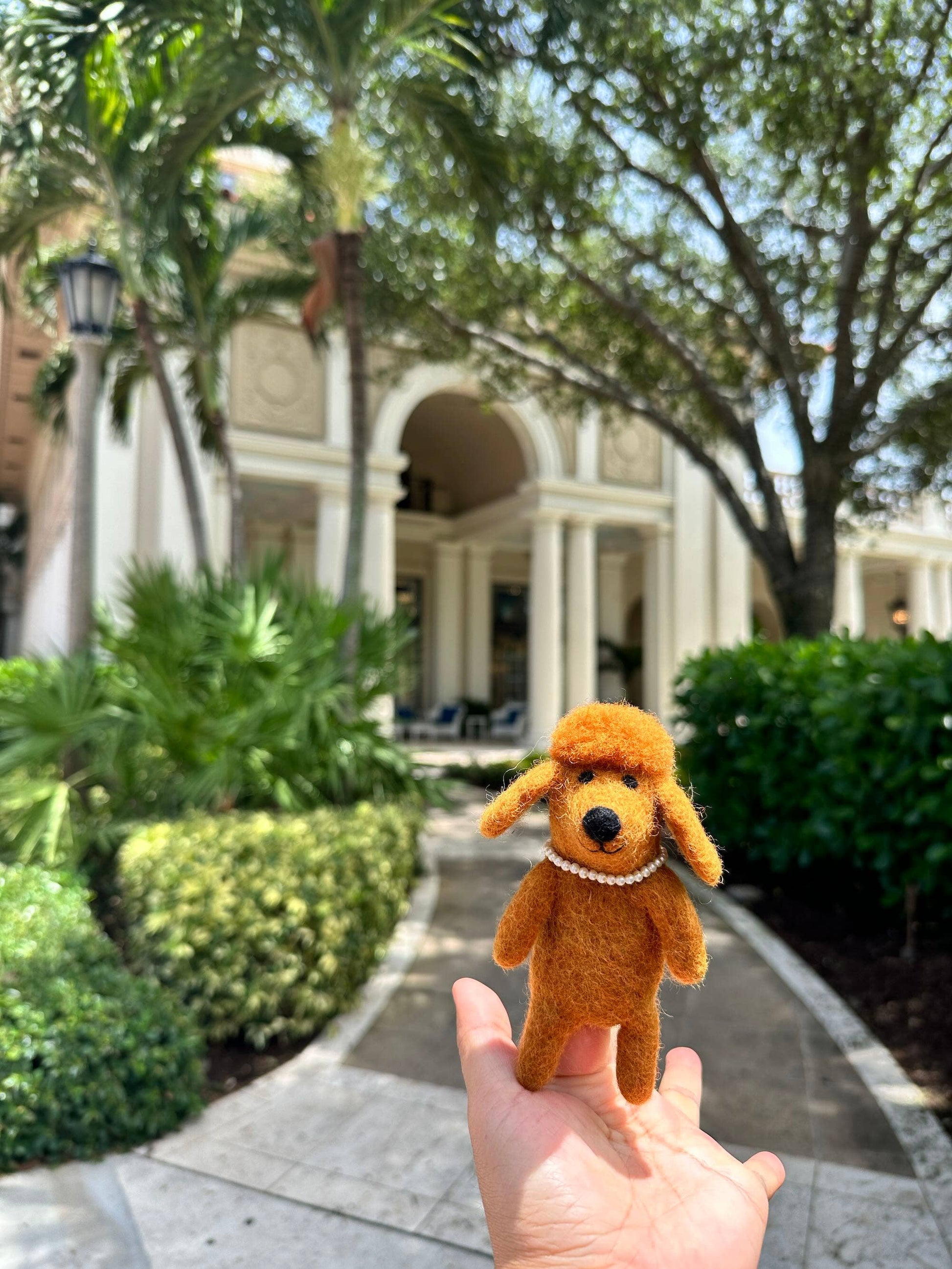 Our felted wool poodle puppet makes the perfect gift for little dog lovers, promoting creativity and imaginative play. She has fluffy hair on her head and comes dressed in a delicate plastic pearl necklace. Available in three elegant colors: white, beige, and brown. Handcrafted from wool by artisans in Nepal, this fair trade certified puppet is a gift you can feel good about giving.